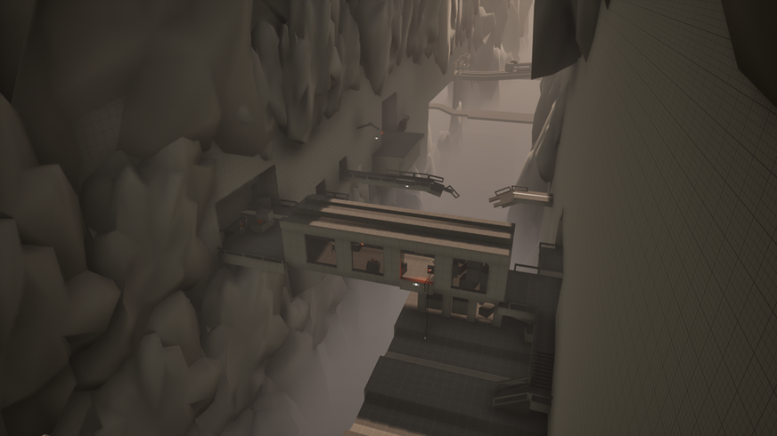 Initially, the facility was intended to be set entirely indoors. However, as I began blocking out layouts and experimenting with the design, I found that the environment felt a bit boring and stale. It felt like the level was missing that "big thing" that would really make it stand out. So i decided to build it around a large ravine.